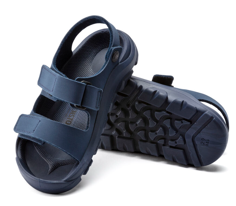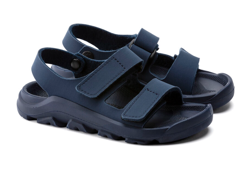 The perfect play sandal for kids and their everyday adventures! Totally waterproof. Incredibly durable. And, of course, wildly comfortable. The BIRKENSTOCK Mogami features a waterproof synthetic Birko-Flor upper, hook and loop straps and a contoured PU footbed for Birkenstock comfort and support.