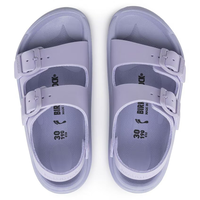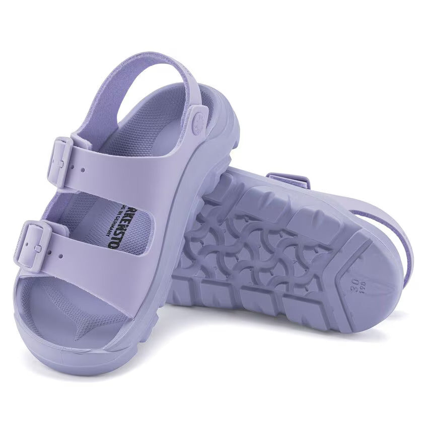 The perfect sandal for the playground, exploring forests, running across meadows, and jumping into puddles! The BIRKENSTOCK Mogami is the perfect match for adventures of any kind thanks to the waterproof footbed with toe protection and the highly functional sole which is injected into the footbed and upper in two layers. This makes the sandal extremely flexible and durable in any terrain. This version boasts vibrant colors. The upper is made from the skin-friendly, hard-wearing synthetic material Birko-Flor®.