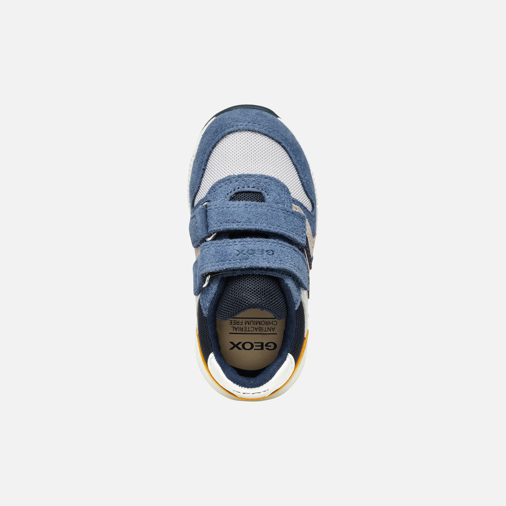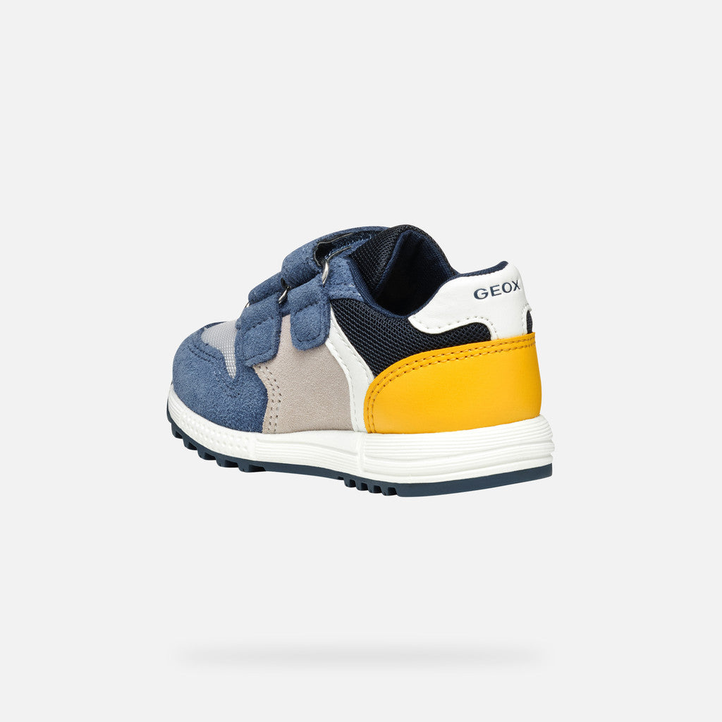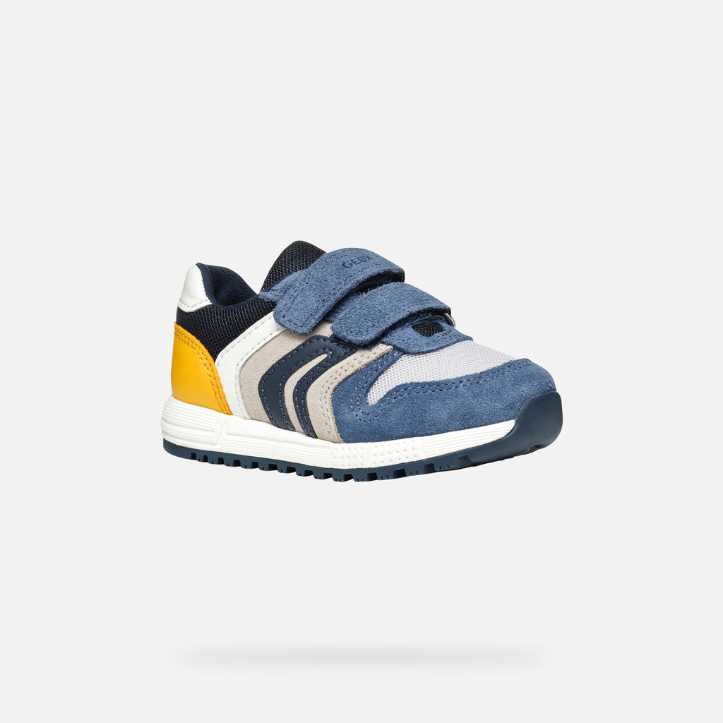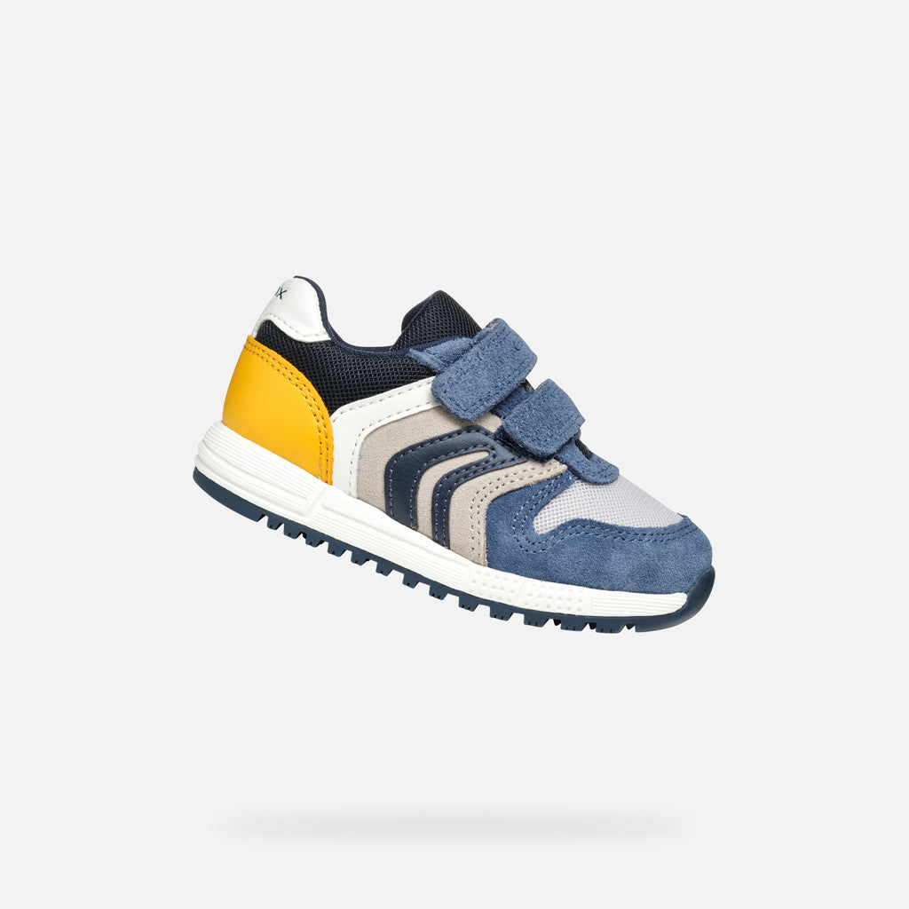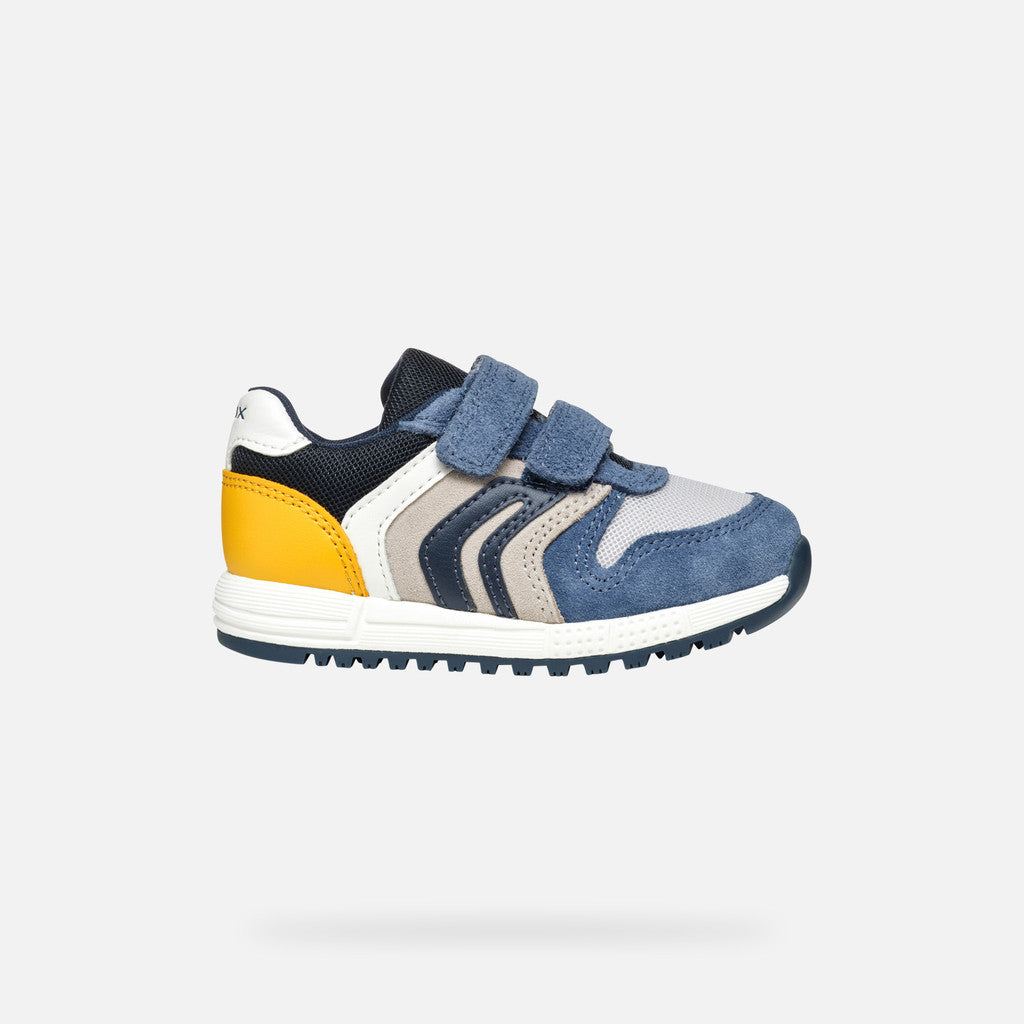 Casual-looking sneaker for babies with a breathable design and sleek retro running-shoe silhouette. Alben has a soft upper made from suede and mesh in a pale-pink-&-white colorway. Easy to pull on and adjust with a practical double-rip tape closure, it offers outstanding levels of safety and keeps them steady on their feet as they revel in their everyday adventures.