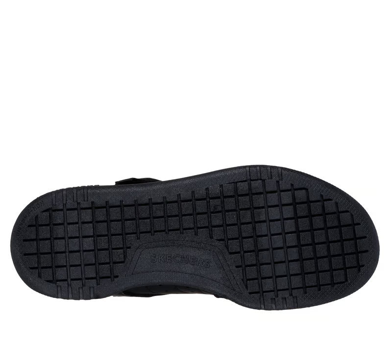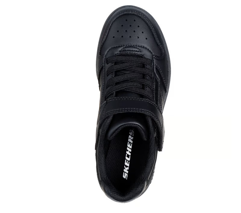 Alley-oop in comfortable court-style wearing Skechers Street™ Quick Street. This machine-washable low-top features a smooth duraleather upper with stretch laces, Skechers adaptive closure, and a cushioned comfort insole.
