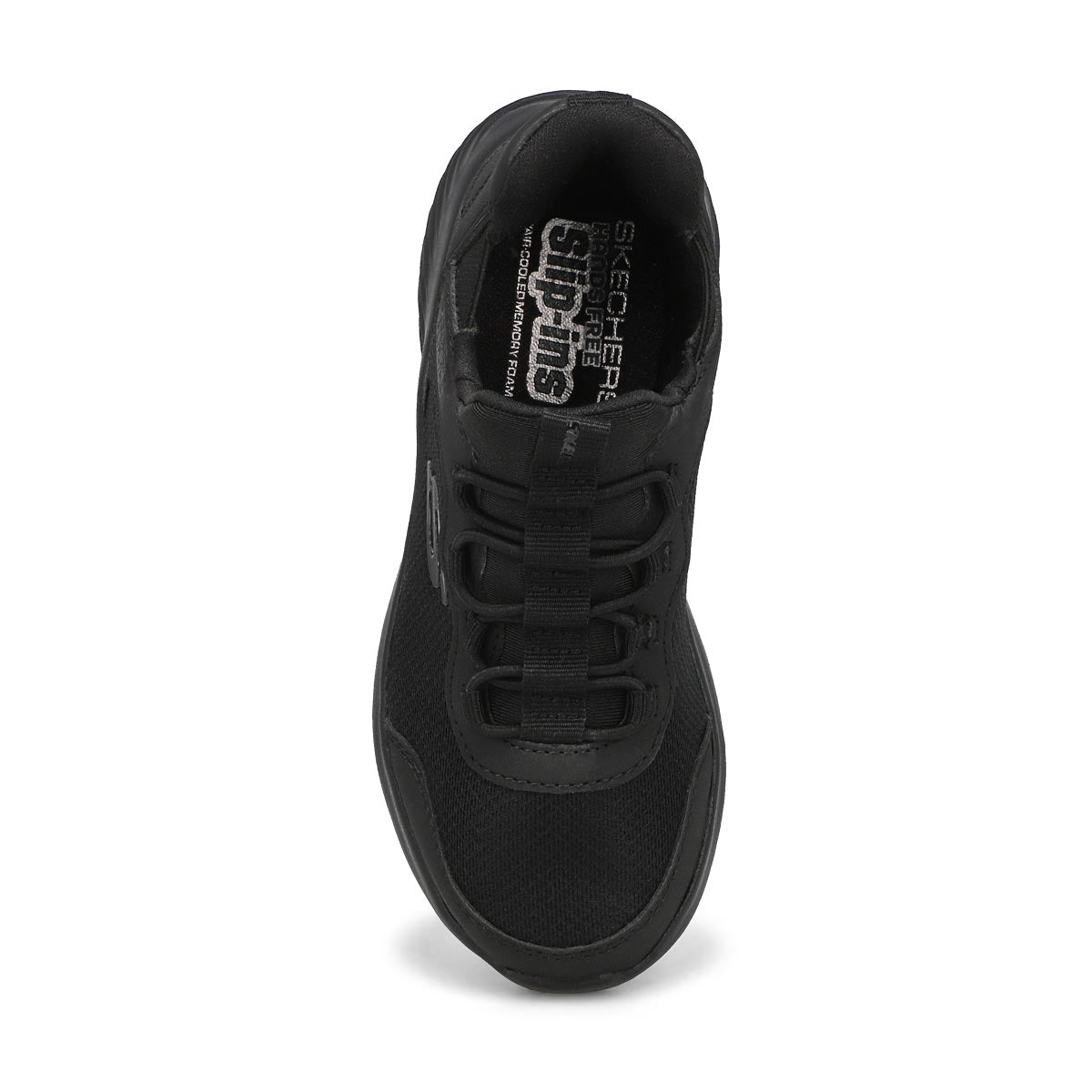 Effortless comfort to start their day is here with Skechers Hands Free Slip-ins®: Bounder - Brisk-Burst. Designed with our exclusive Heel Pillow™, this TOUCHLESS FIT® slip-on style features a mesh and synthetic upper with stretch laces and a cushioned Skechers Air-Cooled Memory Foam® insole.