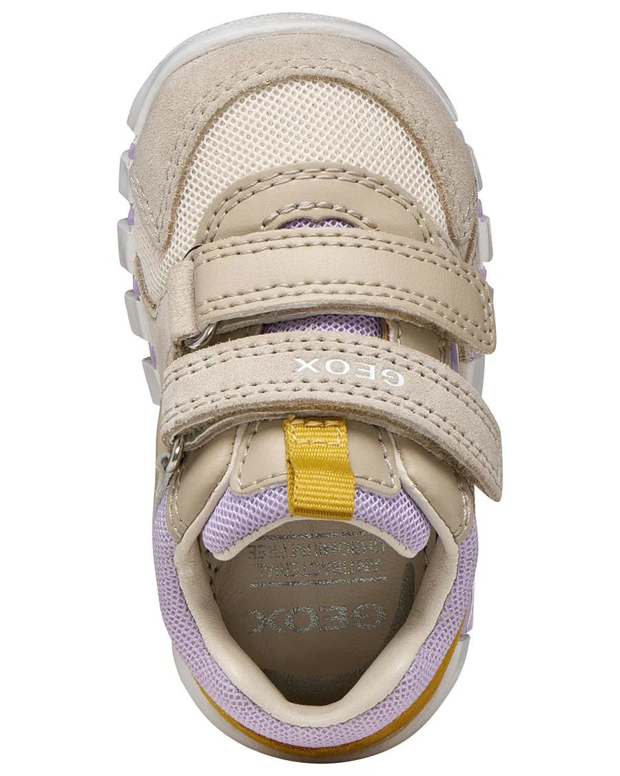Flexible and cushioned baby first steps sneakers, designed to ensure maximum comfort. In this version combining caramel and ochre, Iupidoo wins you over with its dynamic and sporty look, perfect for everyday mini outfits. Made of suede and mesh, it is light and breathable, the ideal companion for their first adventures.