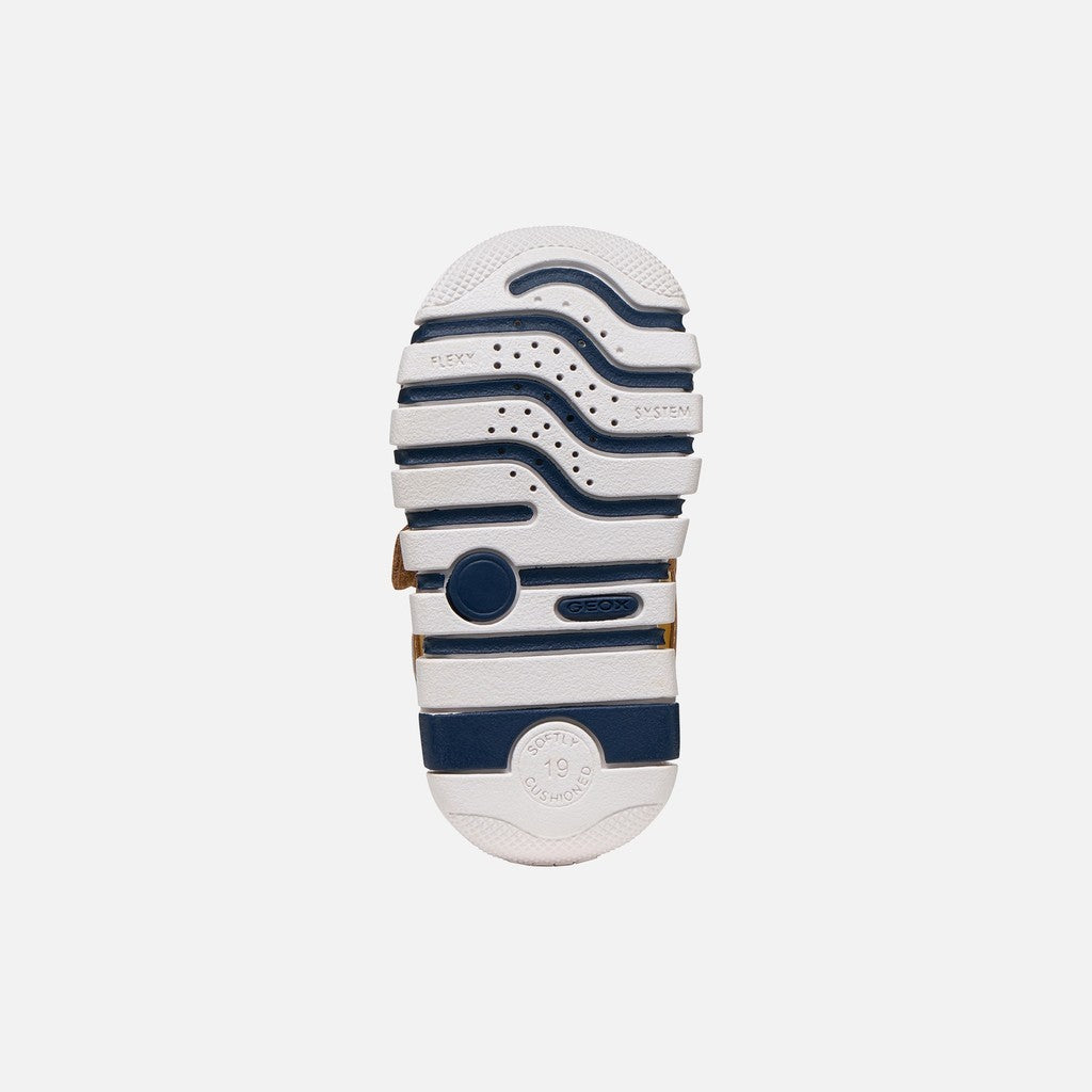 Flexible and cushioned baby first steps sneakers, designed to ensure maximum comfort. In this version combining caramel and ochre, Iupidoo wins you over with its dynamic and sporty look, perfect for everyday mini outfits. Made of suede and mesh, it is light and breathable, the ideal companion for their first adventures.