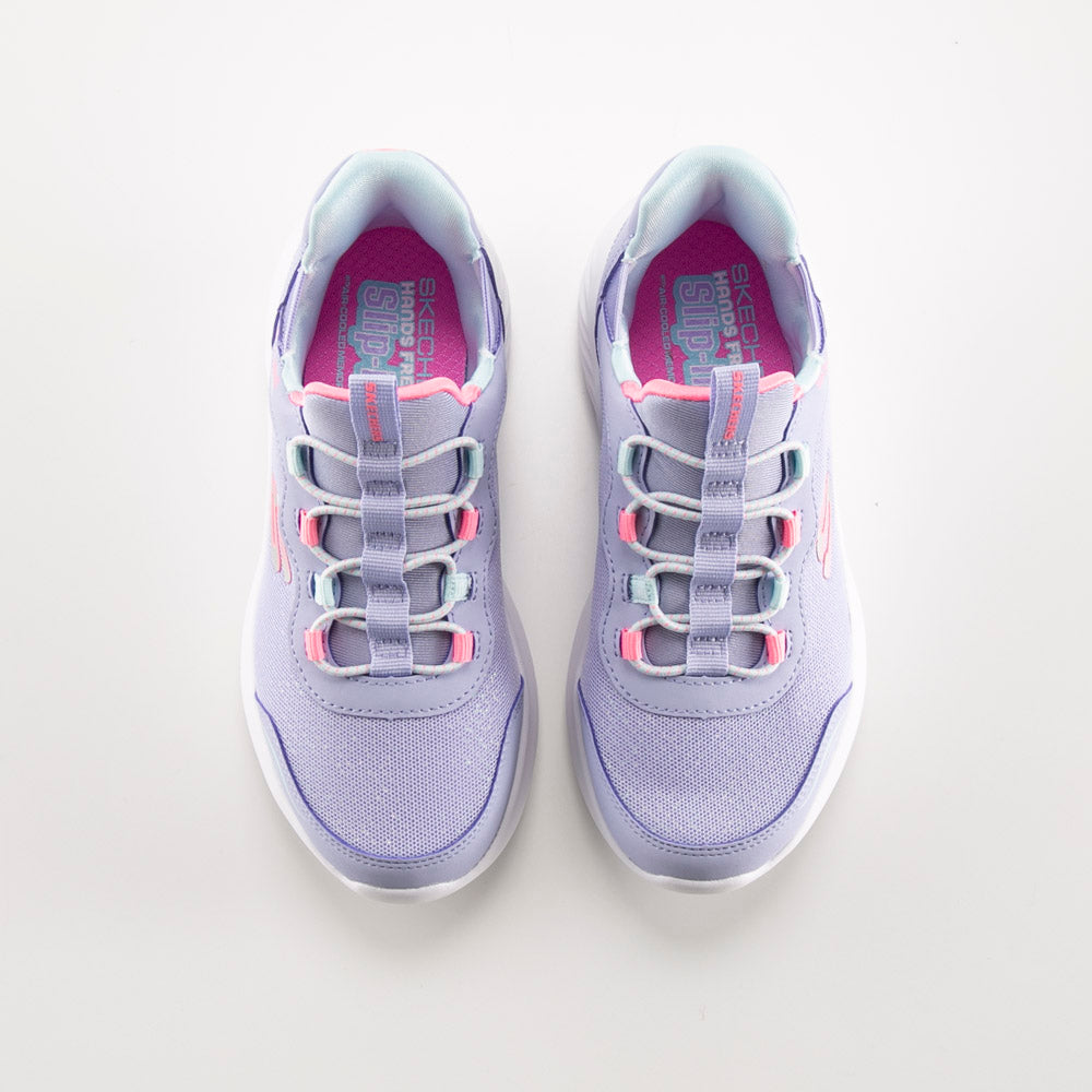 Effortless comfort comes with Skechers Hands Free Slip-ins®: Bounder - Simple Cute. Designed with our exclusive Heel Pillow™, this slip-on style features a mesh and synthetic upper with stretch laces, Skechers adaptive closure, and a cushioned Skechers Air-Cooled Memory Foam® insole.