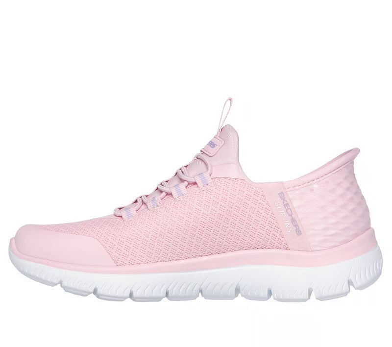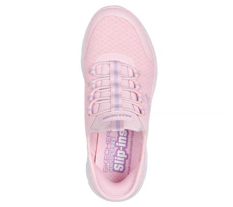 Go Hands Free™ Bring the kids in on the comfort of a Skechers favorite with Skechers Slip-ins®: Summits. Designed with our exclusive Heel Pillow™, this popular slip-on style features a mesh and hotmelt overlay upper with fixed stretch laces and a cushioned Skechers Air-Cooled Memory Foam® comfort insole.