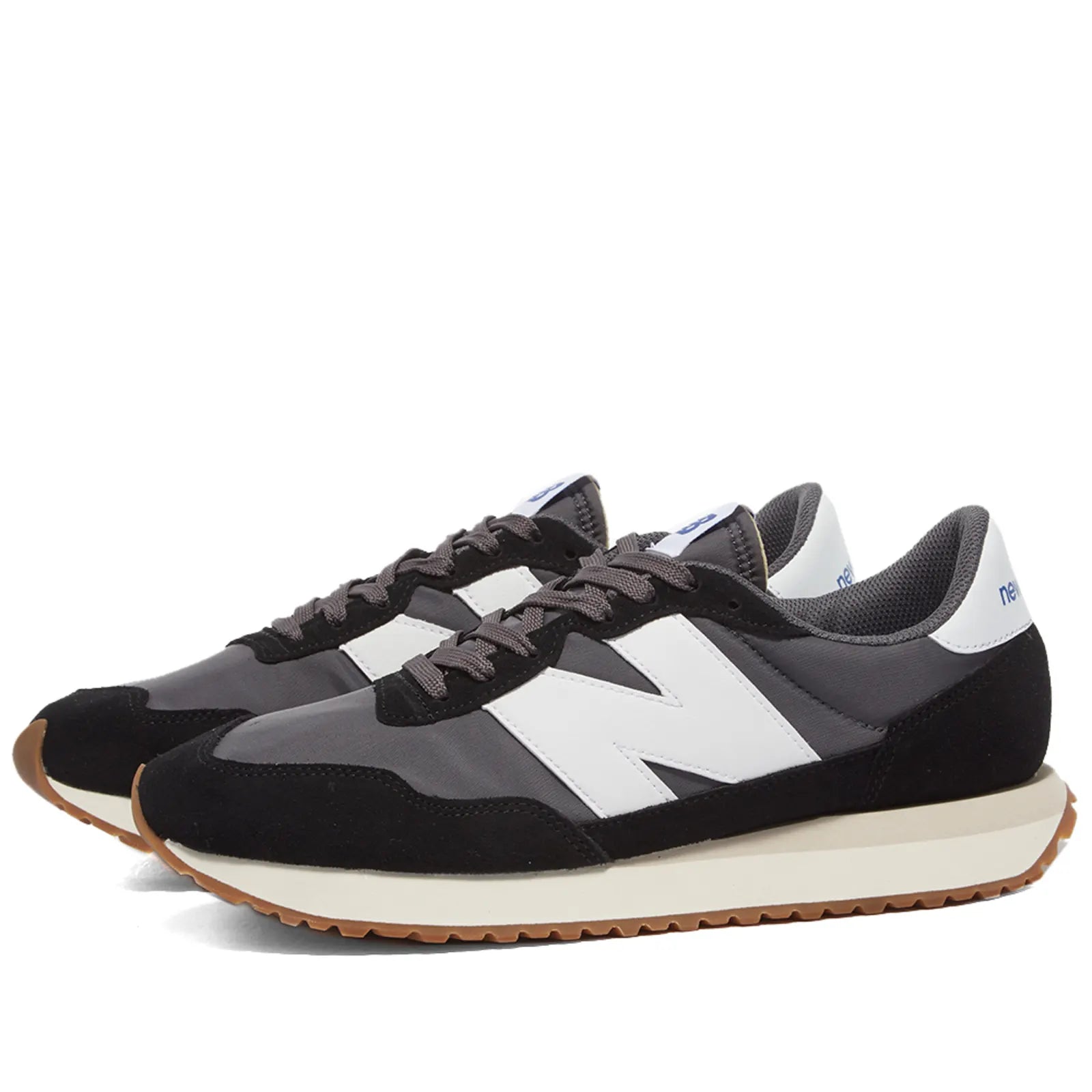 The running shoes of the 1970s might best be described as deceptively simple. While lacking the visible technology and aggressive design of later years, the innovations of the ‘70s would lay the foundation for modern performance. The 237 is a contemporary reinterpretation of ‘70s running heritage that melds a range of heritage design inspirations into one deceptively simple, exceptionally versatile, contemporary silhouette. An EVA midsole, herringbone outsole and streamlined upper offer a classic launching point for modern flourishes like oversized N branding, extended midsole length, and gator inspired foxing and mudguard. You could call the cohesion of the 237’s familiar feel and exaggerated updates the simplest way to make a statement.